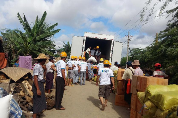 2016年8月,曼德勒地區(qū)發(fā)生水災(zāi),緬甸曼德勒海螺向受災(zāi)群眾捐贈賑災(zāi)物資