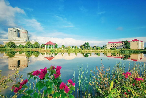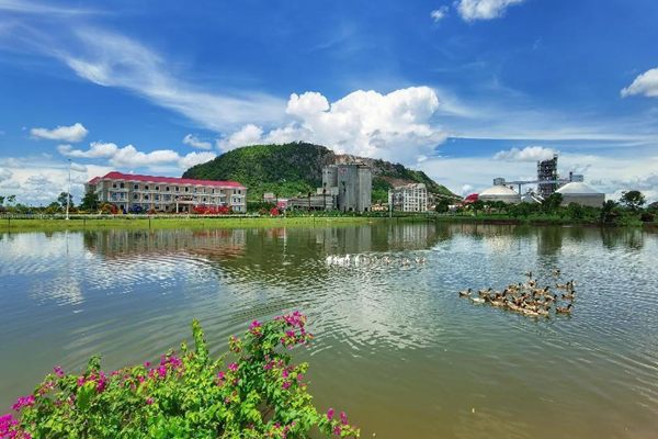 走進馬德望海螺廠區(qū),綠水環(huán)繞,青山相倚,花草掩映成趣,人工湖埂和綠植共同組成的“CONCH”標志在衛(wèi)星圖中也十分明顯,巧妙的設(shè)計使得自然和人文景觀相融極具特色,湖中成群的野鴨游過,一幅人與自然和諧共生的美麗畫卷徐徐展開。