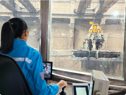 8月15日,在重慶海螺水泥有限責(zé)任公司,工作人員在操作機(jī)械臂進(jìn)行垃圾處理作業(yè)。新華社記者 唐奕 攝