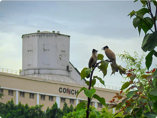 在重慶海螺水泥有限責(zé)任公司,鳥兒在廠區(qū)內(nèi)的綠植上嬉戲。新華社記者 唐奕 攝