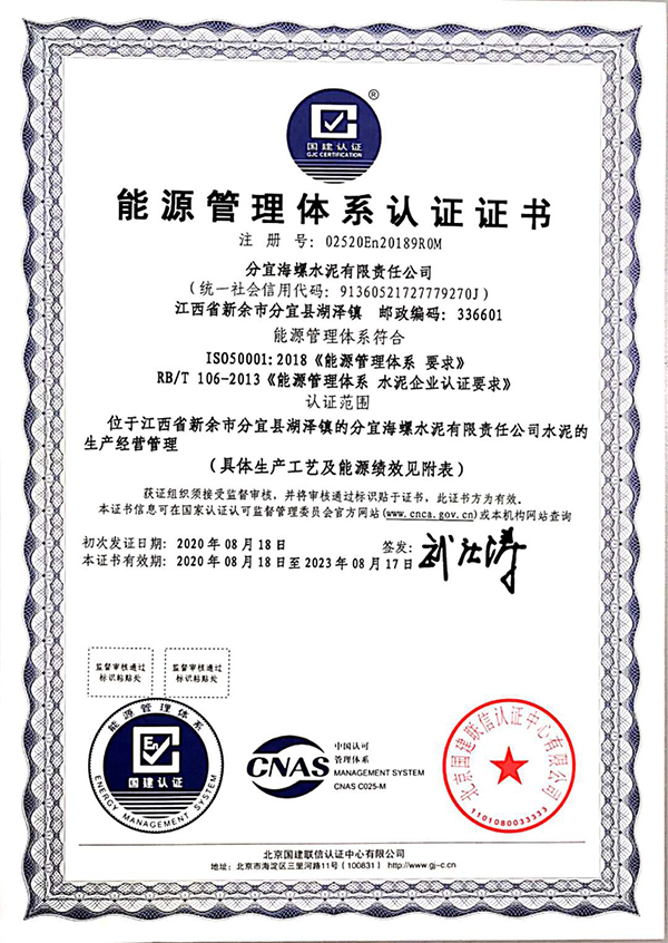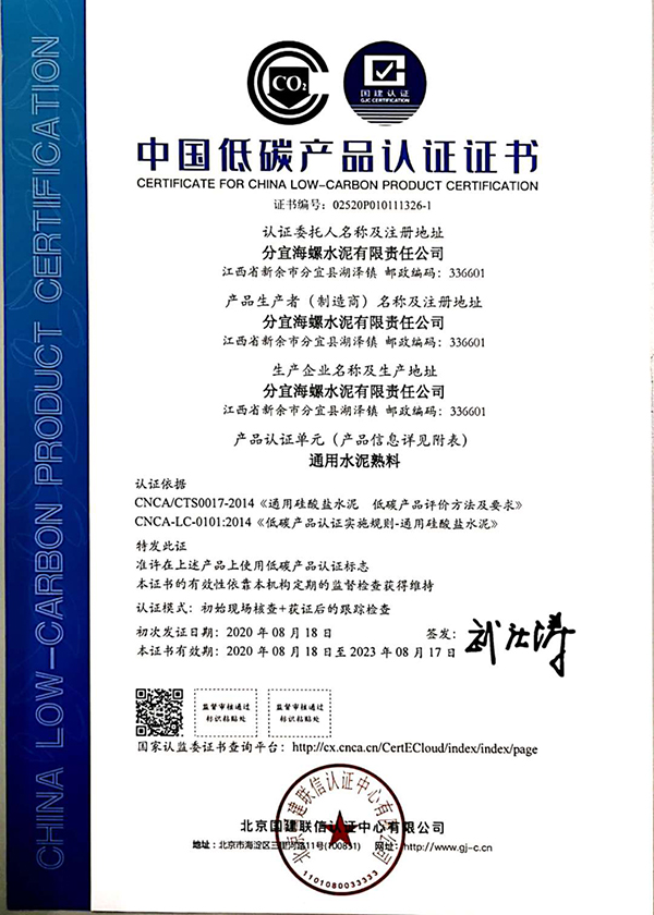 近期,分宜海螺水泥有限責(zé)任公司生產(chǎn)的水泥產(chǎn)品(包含通用水泥熟料、普通硅酸鹽水泥P.O42.5、普通硅酸鹽水泥P.O52.5)順利通過國家低碳產(chǎn)品認(rèn)證審核,獲得《低碳產(chǎn)品認(rèn)證證書》,成為新余首家取得低碳產(chǎn)品認(rèn)證證書的企業(yè)。同時獲得《能源管理體系認(rèn)證證書》。