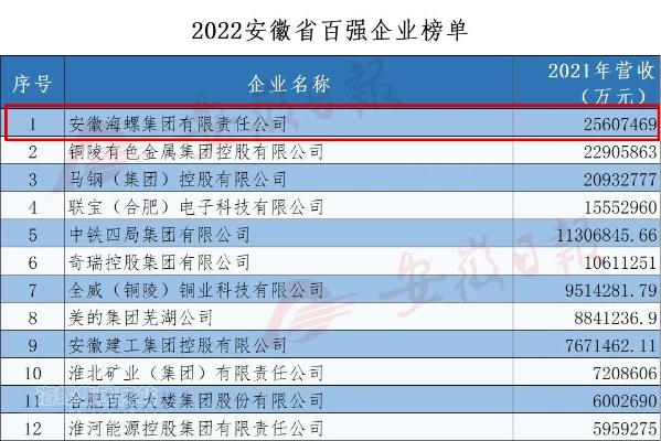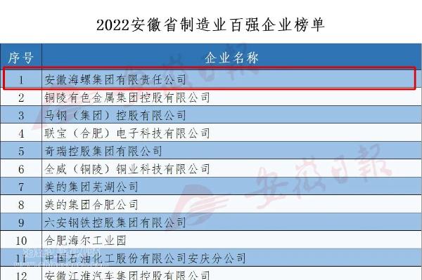 12月12日,安徽省企業(yè)聯(lián)合會(huì)、省企業(yè)家聯(lián)合會(huì)連續(xù)第18次發(fā)布“2022安徽百強(qiáng)企業(yè)”、“2022安徽制造業(yè)百強(qiáng)企業(yè)”、“2022安徽服務(wù)業(yè)百強(qiáng)企業(yè)”榜單。海螺集團(tuán)名列“2022安徽百強(qiáng)企業(yè)”、“2022安徽制造業(yè)百強(qiáng)企業(yè)”兩項(xiàng)第一。