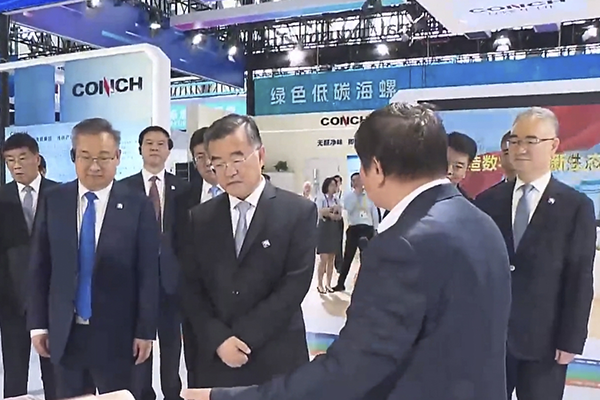 開幕式后,全國人大常委會副委員長張慶偉、省委書記梁言順、省長王清憲一行巡館,查看了海螺集團(tuán)展館和海螺建筑光伏大道,聽取了海螺加快產(chǎn)業(yè)轉(zhuǎn)型升級,推動企業(yè)高質(zhì)量發(fā)展的情況介紹。