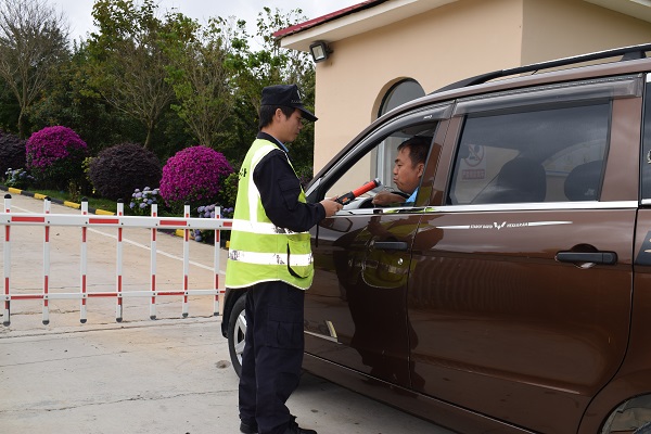 在保山海螺廠區(qū)門口,值班保衛(wèi)人員正在對進(jìn)出廠車輛進(jìn)行安全檢查?!爸形绾鸵归g,大家最容易麻痹大意、掉以輕心,作為治安保衛(wèi)人員,越是這種時候,越要打起十二分精神,不能懈怠。”保山海螺治安保衛(wèi)班長何康升說。