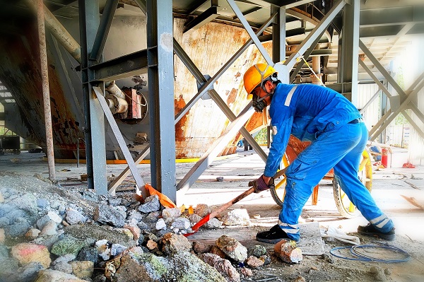 8月2日,達(dá)州海螺窯檢修步入尾聲,巡檢工馮圣超正在對(duì)檢修過(guò)程更換的澆注料等進(jìn)行清理。(段益平/攝)