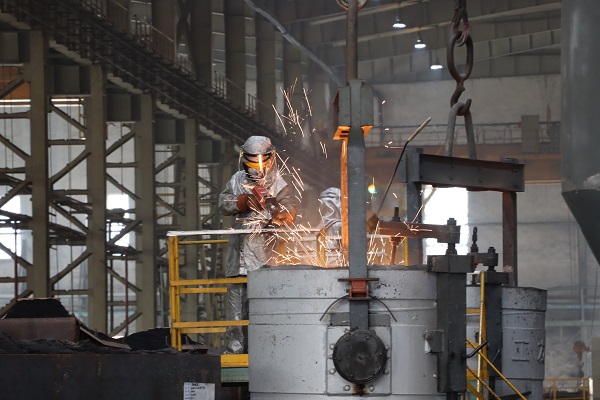 8月17日清晨,海川裝備公司180輥壓機(jī)軸承座澆注生產(chǎn)作業(yè)正在緊張有序地進(jìn)行中,為了保證這個(gè)重達(dá)近10噸的“大家伙”最終的澆注質(zhì)量,鑄造分廠澆注工程國(guó)強(qiáng)正在和工友們進(jìn)行著最后的測(cè)溫工作,厚重的鋁箔防火隔熱服內(nèi),汗水順著皮膚不斷滑落,而他們依舊全神貫注,他說(shuō):“鋼包測(cè)溫是澆注工序的最后一項(xiàng)重要工作,必須保證每個(gè)動(dòng)作規(guī)范到位,心靜自然涼,專注在手上,也就感覺(jué)不到熱了?!保▍雾嵶?攝)