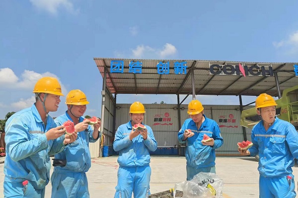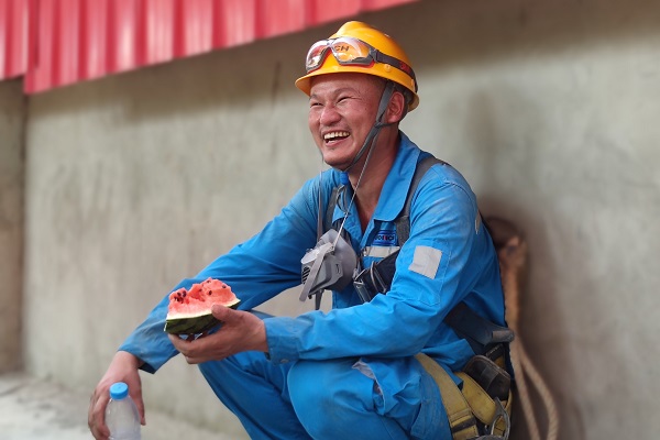 搶進(jìn)度、穩(wěn)運(yùn)行、抓生產(chǎn),這群可愛(ài)可敬的身影穿梭于生產(chǎn)一線,陽(yáng)光照耀下,他們面龐上的汗水愈發(fā)顯得晶瑩。一心抓安全生產(chǎn)的他們,也同樣需要得到保護(hù),從西瓜、冰鎮(zhèn)綠豆湯、酸梅湯,到仁丹、十滴水,鏡頭下,接過(guò)防暑降溫品的他們,露出了質(zhì)樸真誠(chéng)的笑容,這就是夏日里海螺水泥一線員工群像。