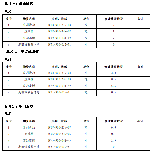 由于5月份上海區(qū)域危廢招標數(shù)量較少,導致流標,考慮到區(qū)域南通、海門、太倉等5家公司危廢處置合同即將到期,為防范環(huán)?;轱L險,確保廢油、廢舊油桶、廢油漆桶、廢鉛酸蓄電池等危廢材料符合相關(guān)環(huán)保處置要求,由海螺明珠牽頭組織對上海、江蘇危廢處置進行再次公開招標,具體事項安排如下: