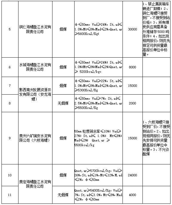 1.煙煤新客戶首次投標(biāo)量不允許超過3500噸(原則上一個整列),無煙煤新客戶首次投標(biāo)量不允許超過5000噸,且均只能投標(biāo)一家海螺公司(2020年1月-2021年7月期間未向海螺水泥貴州區(qū)域形成實質(zhì)性煙煤、無煙煤供貨的客戶均視為煙煤、無煙煤標(biāo)的投標(biāo)新客戶),原則上投標(biāo)可供量不得小于3000噸,但考慮安龍海螺本次無煙煤僅招標(biāo)2000噸,因此安龍海螺無煙煤投標(biāo)量不予限制。