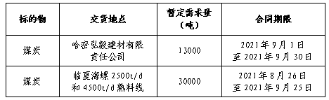 為做好哈密弘毅公司及臨夏海螺9月份煤炭采購(gòu)工作,滿足生產(chǎn)需要,本著“公開、公平、公正”的原則,擬對(duì)煤炭供貨進(jìn)行公開招標(biāo),現(xiàn)將招標(biāo)采購(gòu)信息發(fā)布如下: