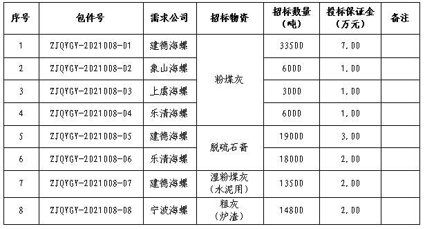 為進(jìn)一步體現(xiàn)公平、公正、公開的原則,拓寬采購渠道,提高采購質(zhì)量,增強(qiáng)粉煤灰、脫硫石膏等物資保供安全性。浙江區(qū)域建德海螺、寧波海螺、象山海螺、上虞海螺、樂清海螺五家公司聯(lián)合統(tǒng)一對(duì)生產(chǎn)水泥所需的粉煤灰、脫硫石膏等物資采購進(jìn)行公開招標(biāo),現(xiàn)將相關(guān)事宜公告如下: