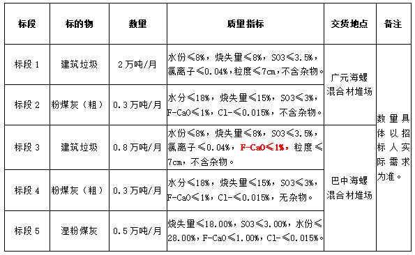 3.投標(biāo)報(bào)名單位需具有較強(qiáng)的保供能力,其中建筑垃圾投標(biāo)渠道必須為加工型企業(yè),且月供貨能力不低于0.5萬(wàn)噸;粉煤灰投標(biāo)渠道必須為直供渠道,粉煤灰(粗)月供貨能力不低于0.3萬(wàn)噸,濕粉煤灰月供貨能力不低于0.5萬(wàn)噸,同時(shí)貨源不能為四川廣旺電力公司嘉川電廠(chǎng)、代池壩電廠(chǎng)和南江煤電公司現(xiàn)階段所產(chǎn)粉煤灰。