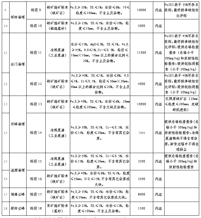1、標的內容:鐵質材料(冶煉廢渣、鐵礦選礦粉末、鐵合金爐渣、有色金屬灰渣、鐵礦采礦粉末、采礦選礦粉末等);