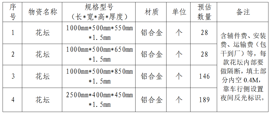 梁平海螺擬購(gòu)買道路花壇一批,為進(jìn)一步體現(xiàn)公開(kāi)、公平、公正、擇優(yōu)的原則,拓寬采購(gòu)渠道,保證采購(gòu)質(zhì)量,現(xiàn)將招標(biāo)采購(gòu)信息發(fā)布如下: