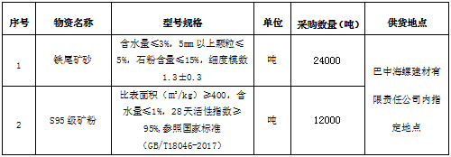 1.標(biāo)的內(nèi)容:鐵尾礦砂、S95級(jí)礦粉;