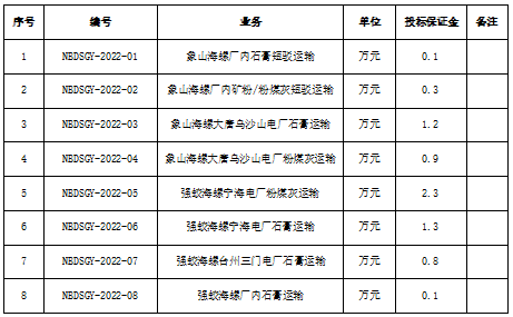 1、招標公示及投標報名時間:2021年11月19日--2021年11月26日(北京時間上午8:00-12:00,下午13:30-17:30),各單位需滿足招標要求,并提供相關證明材料作為資格評審資料(法人代表授權書、營業(yè)執(zhí)照副本、道路運輸經(jīng)營許可證、投標報名人身份證等原件或復印件加蓋公章,電廠粉煤灰運輸參與車輛需提供GPS),報名地點象山海螺財務處業(yè)務室。