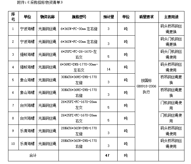 1、招標(biāo)項目名稱:光面鋼絲繩
