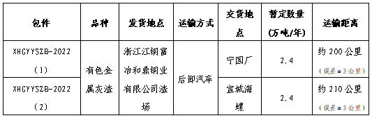 浙江江銅富冶和鼎銅業(yè)有限公司渣場(chǎng)至宣城海螺、寧國(guó)廠(chǎng)有色金屬灰渣運(yùn)輸項(xiàng)目,年運(yùn)量共計(jì)約4.8萬(wàn)噸。