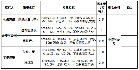 根據(jù)2021-2022年淡季平?jīng)龊B?、禮泉海螺及金陵河公司生產(chǎn)經(jīng)營(yíng)計(jì)劃,現(xiàn)對(duì)2021-2022年淡季部分電廠工業(yè)廢渣采購(gòu)組織招標(biāo),為進(jìn)一步體現(xiàn)公平、公正、公開透明的原則,此次招標(biāo)將在安徽海螺水泥股份有限公司陽(yáng)光采購(gòu)平臺(tái)公開進(jìn)行,現(xiàn)將招標(biāo)采購(gòu)信息發(fā)布如下:
