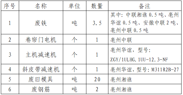 安徽海螺綠色新型材料有限公司擬對(duì)下屬子公司廢舊物資進(jìn)行公開(kāi)招標(biāo),選定中標(biāo)人?,F(xiàn)將相關(guān)事宜公告如下: