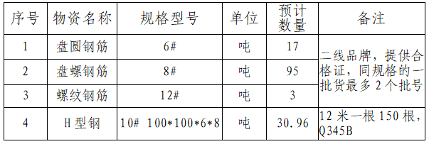 3.本次招標(biāo)要求投標(biāo)人公司經(jīng)營(yíng)范圍需涵蓋鋼材、金屬材料生產(chǎn)或銷售資質(zhì),具備獨(dú)立承擔(dān)民事責(zé)任能力。