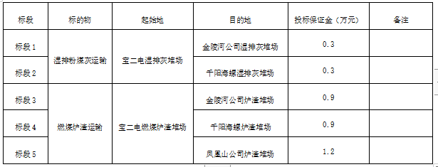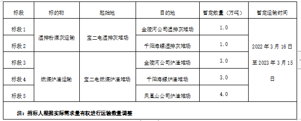 1.標(biāo)的物:寶雞二電廠濕排灰、燃煤爐渣運輸。