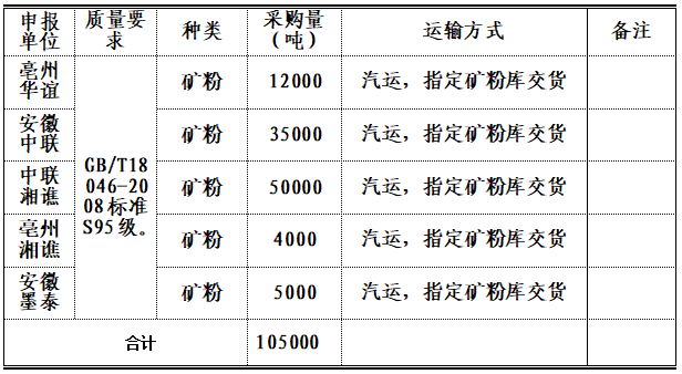 3.2022年4月至12月份礦粉計(jì)劃采購(gòu)量10.5萬噸,具體如下: