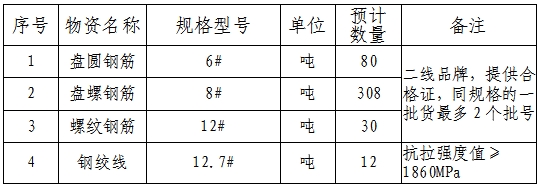 3.本次招標(biāo)要求投標(biāo)人公司經(jīng)營范圍需涵蓋鋼材、金屬材料、預(yù)應(yīng)力鋼絞線生產(chǎn)或銷售資質(zhì),具備獨(dú)立承擔(dān)民事責(zé)任能力。