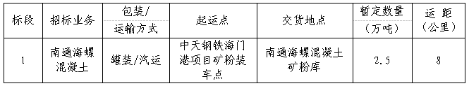 2.標(biāo)段運輸起止:中天鋼鐵海門港項目礦粉裝車點至南通海螺混凝土礦粉庫