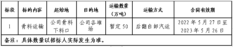 (二)2022年5月18日9:00至2022年5月21日9:00在禮泉海螺物資陽光采購平臺發(fā)布骨料運(yùn)輸招標(biāo)公告,同步在禮泉海螺公司大門、開票大廳、直供電廠及礦點等發(fā)布招標(biāo)公告,同時在當(dāng)?shù)刂饕獔笊邕M(jìn)行公告,并接受報名;