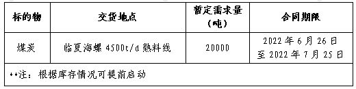 為做好我公司2022年煤炭采購(gòu)工作,滿足生產(chǎn)需要,本著“公開、公平、公正”的原則,擬對(duì)煤炭貿(mào)易渠道供貨進(jìn)行公開招標(biāo),現(xiàn)將招標(biāo)采購(gòu)信息發(fā)布如下: