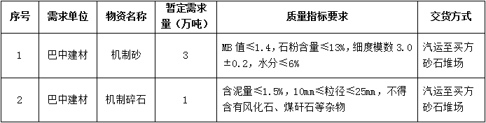 1.標(biāo)的內(nèi)容:機(jī)制砂、機(jī)制碎石