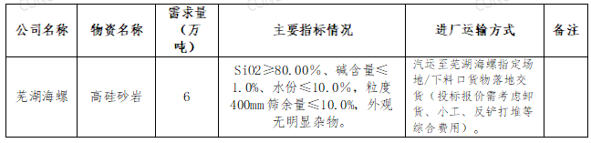 根據(jù)生產(chǎn)需求,本著“公開(kāi)、公平、公正”的原則,蕪湖海螺供應(yīng)處擬對(duì)外購(gòu)砂巖進(jìn)行公開(kāi)招標(biāo),歡迎具備條件的單位參加,現(xiàn)將招標(biāo)相關(guān)事宜公告如下: