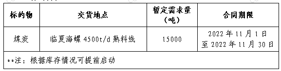 為做好我公司2022年煤炭采購工作,滿足生產(chǎn)需要,本著“公開、公平、公正”的原則,擬對煤炭貿(mào)易渠道供貨進行公開招標,現(xiàn)將招標采購信息發(fā)布如下: