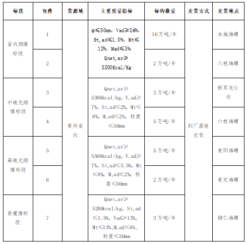 2.投標人所提供礦點煤炭生產(chǎn)能力30萬噸/年及以上,礦點屬于貴州省內(nèi)資源;