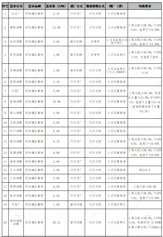 根據(jù)海螺水泥各公司生產(chǎn)經(jīng)營計(jì)劃,安徽銅陵海螺水泥有限公司聯(lián)合華東及中部地區(qū)部分公司對改性磷石膏粉、原狀酸性磷石膏粉進(jìn)行聯(lián)合招標(biāo),為進(jìn)一步體現(xiàn)公平、公正、公開的原則,拓寬采購渠道,提高采購質(zhì)量,現(xiàn)將招標(biāo)采購信息發(fā)布如下: