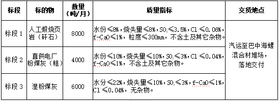 2.投標(biāo)人需具有較強(qiáng)的保供能力,標(biāo)段1月供貨能力不低于0.5萬噸,標(biāo)段2不設(shè)置最低供貨量,標(biāo)段3月供貨能力不低于0.3萬噸。同時(shí),為維護(hù)直供關(guān)系,貿(mào)易渠道貨源不能為川煤華榮公司下轄嘉川電廠、代池壩電廠及南江煤電公司粉煤灰資源。