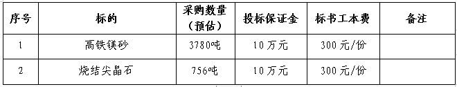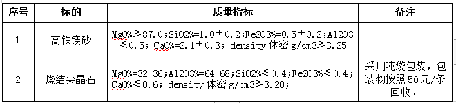 1.1招標名稱:安徽海螺暹羅耐火材料有限公司高鐵鎂砂和燒結(jié)尖晶石招標。
