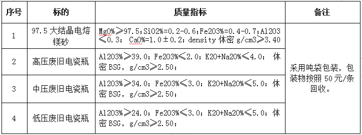 注:上述鎂質(zhì)原材料必須為天然礦石制品,不得使用浮選等任何提純工藝生產(chǎn)的輕燒粉作為原材料。