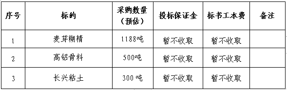 根據(jù)高鋁磚及堿性磚分廠2023年10-12月份產(chǎn)品生產(chǎn)計(jì)劃,結(jié)合前期麥芽糊精、高鋁骨料、粘土等3類原材料合同執(zhí)行及庫存消耗情況,為保證生產(chǎn)所需原材料有序銜接,同時(shí)進(jìn)一步降低采購成本,現(xiàn)本著“公開、公平、公正、透明”的原則公開招標(biāo),誠邀經(jīng)營資質(zhì)能力較好、保供和服務(wù)能力較強(qiáng)的單位參加投標(biāo)。現(xiàn)就招標(biāo)相關(guān)事項(xiàng)公示如下: