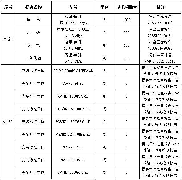 1.招標(biāo)物資名稱:工業(yè)氣體(氧氣、乙炔、氮?dú)?、二氧化碳、?biāo)準(zhǔn)氣體)。