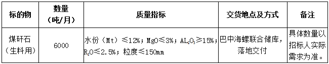 2.投標(biāo)人必須具有穩(wěn)定的貨源,需提供貨源地相關(guān)證明材料且資質(zhì)符合要求。根據(jù)巴中海螺直供資源合作需要,本次招標(biāo)不接受貨源地為川煤華榮公司代池壩選煤廠的渠道投標(biāo)。
