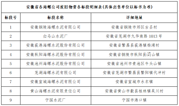 1.標的內(nèi)容:省內(nèi)區(qū)域各海螺公司廢舊物資。