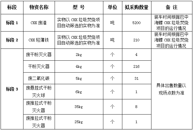 3.合同期限:標段1(CKK廢渣):2024年3月15日至2025年3月14日;標段2(CKK輕薄鐵):2024年3月01日至2024年8月31日;標段3(廢滅火器):2024年3月01日至2024年3月31日。