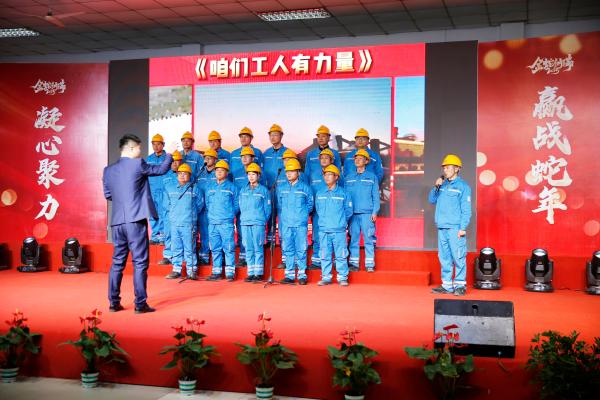 水泥分廠合唱團(tuán)齊聲高唱:“咱們工人有力量,嘿!咱們工人有力量……”歌聲慷慨激昂,唱出了廣大基層員工用堅(jiān)定的信念和不懈的努力為國(guó)家的基礎(chǔ)設(shè)施建設(shè)貢獻(xiàn)力量的決心。