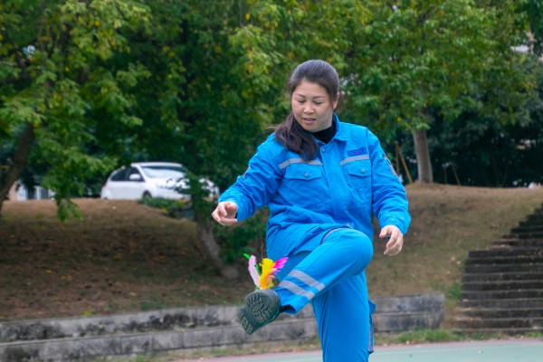 下午的戶外賽場掀起陣陣熱浪。跳繩區(qū)化身“神仙打架”現(xiàn)場:辦公室的“旋風(fēng)小子”以1分鐘215次刷新紀(jì)錄,拉拉隊自發(fā)組成人墻擋風(fēng)助威;踢毽子擂臺賽更上演“毽”拔弩張的精彩對決,彩色羽毛毽在空中劃出優(yōu)美弧線,80后生產(chǎn)處阿姐憑借“雙飛燕”絕技逆襲奪冠。賽事特別設(shè)置“默契雙人賽”,需兩人共用一根繩一起起跳,跨部門組合的選手們從手忙腳亂到配合無間,現(xiàn)場笑聲與加油聲此起彼伏。