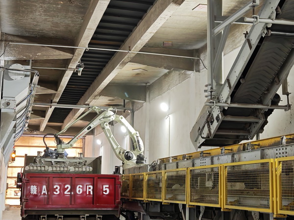 贛江海螺的綠色蝶變,離不開科技的強(qiáng)力支撐。生產(chǎn)車間,智能化、自動(dòng)化設(shè)備隨處可見。智能照明系統(tǒng)根據(jù)光線自動(dòng)調(diào)節(jié)亮度,節(jié)約用電;節(jié)能型風(fēng)機(jī)、水泵等設(shè)備高效運(yùn)轉(zhuǎn),降低能耗;先進(jìn)的DCS控制系統(tǒng)實(shí)時(shí)在線監(jiān)控,確保生產(chǎn)高效、穩(wěn)定運(yùn)行……“2024年,公司對(duì)袋裝裝車道實(shí)施智能化改造,安裝袋裝機(jī)器人自動(dòng)裝車系統(tǒng),實(shí)現(xiàn)自動(dòng)包裝、機(jī)器人裝車、無人過磅,在降低員工勞動(dòng)強(qiáng)度的同時(shí),極大提升了裝卸效率,并進(jìn)一步降低了揚(yáng)塵?!碑?dāng)問及公司智能化建設(shè)成效時(shí),包裝工段吳高松舉例說。