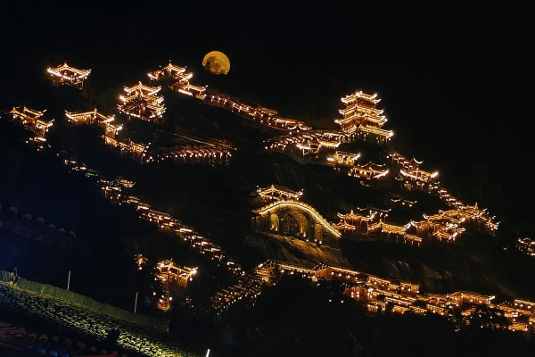 傍晚,在望仙谷,大家又迎接了一場視覺盛宴。隨著夜幕降臨,掛滿崖壁的千盞燈籠漸次亮起,璀璨的燈光與山谷的輪廓交相輝映,營造出一種夢幻般的氛圍。當返程大巴啟動時,不少人手機已經(jīng)新增了百余張照片。