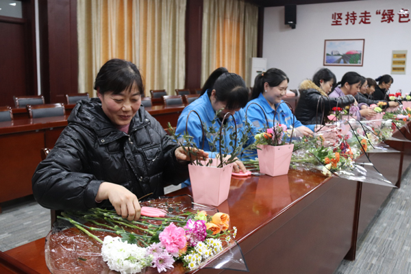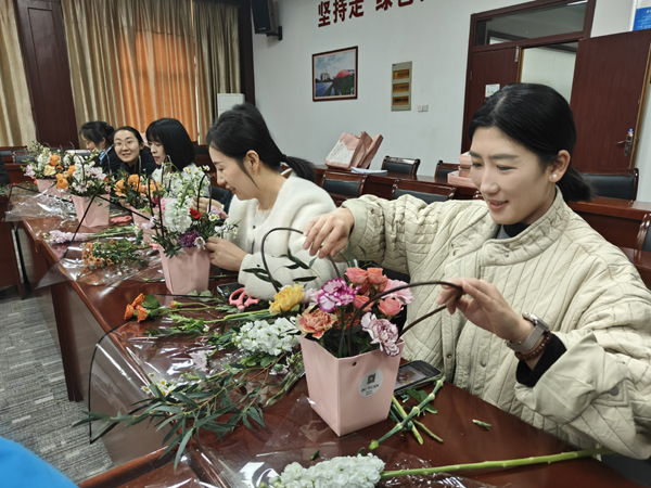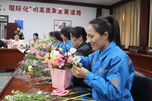 活動(dòng)現(xiàn)場,花藝?yán)蠋煆孽r花品種、鮮花搭配和造型設(shè)計(jì)等方面進(jìn)行了詳細(xì)的講解和現(xiàn)場示范。長桌上鋪滿了各色鮮花與花藝工具,嬌艷的玫瑰、靈動(dòng)的洋桔梗、素雅的康乃馨……女職工們興致勃勃,邊學(xué)邊做,享受著親手創(chuàng)作的樂趣和插花藝術(shù)帶來的快樂。