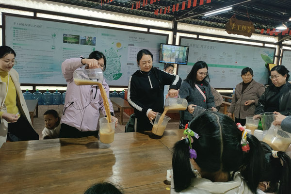 茶山疊翠,步履生香。眾人漫步于峰林茶谷,采擷春色,聆聽茶史。指尖輕觸嫩芽,感悟千年茶韻;巧手調(diào)配奶茶,解鎖專屬風味。蟲鳴作伴,清風相隨,暫別喧囂的女職工們圍坐暢談,于杯盞交錯間覓得悠然時光。